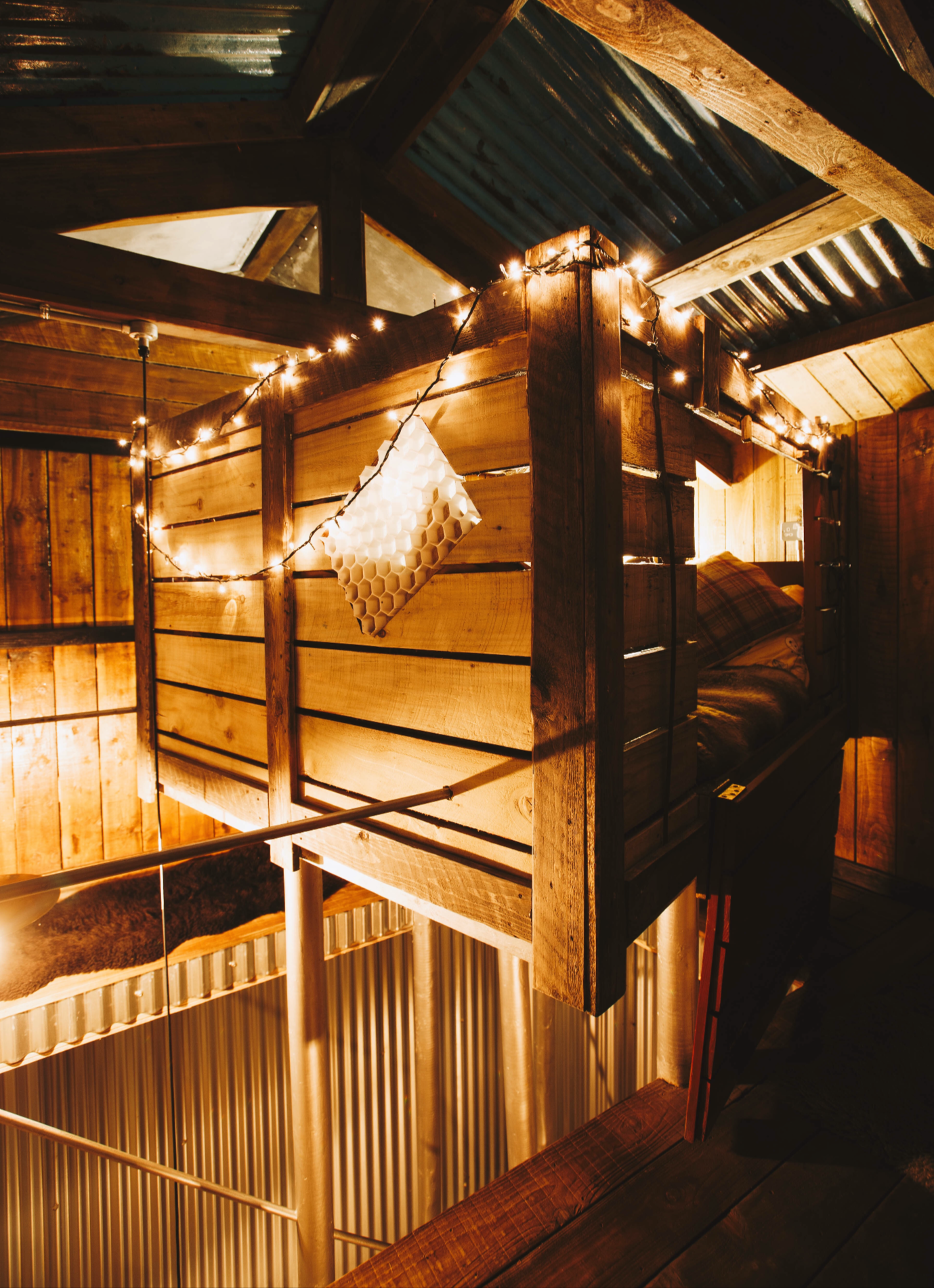 There is even a hot tub shared with your neighbours in The Bird Box and Nutshell at Honeyside Down. However, it’s in the cosy den of the hive where you’ll likely spend most of your time, soaking in the amazing private outdoor bath and napping and luxuriating in the wonderfully creative habitat of Humble Bee.