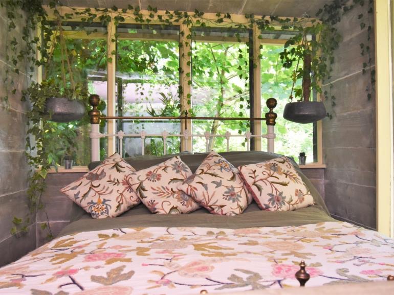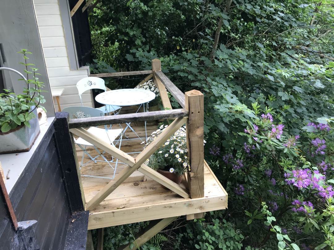 Nestled on an outcrop among the treetops, with views over the town below, is Nutshell. With its own little kitchen, shower room, bedroom and dramatic balcony, it is totally self-sufficient – everything in a nutshell! The rugged Moorland landscape, with high peaks (tors), rivers and wide-open spaces of Dartmoor are just ten minutes’ walk from the front door, while Okehampton centre is just eight, the perfect balance between seclusion and convenience and a great place to snuggle, whatever the weather. Positioned with the best views in the garden is the hot tub, ready for use 24hrs a day, either for relaxing in the dappled sunlight through the tree canopy by day or star-gazing at night. You’re also able to book a masseuse to visit, for an incredibly relaxing afternoon!